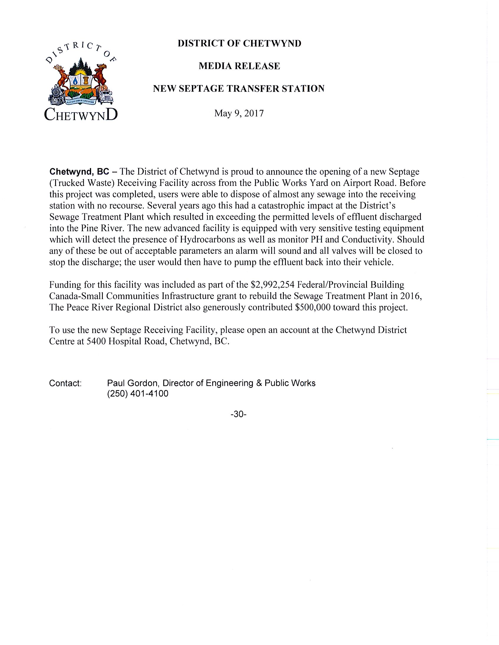New Septage Transfer Station