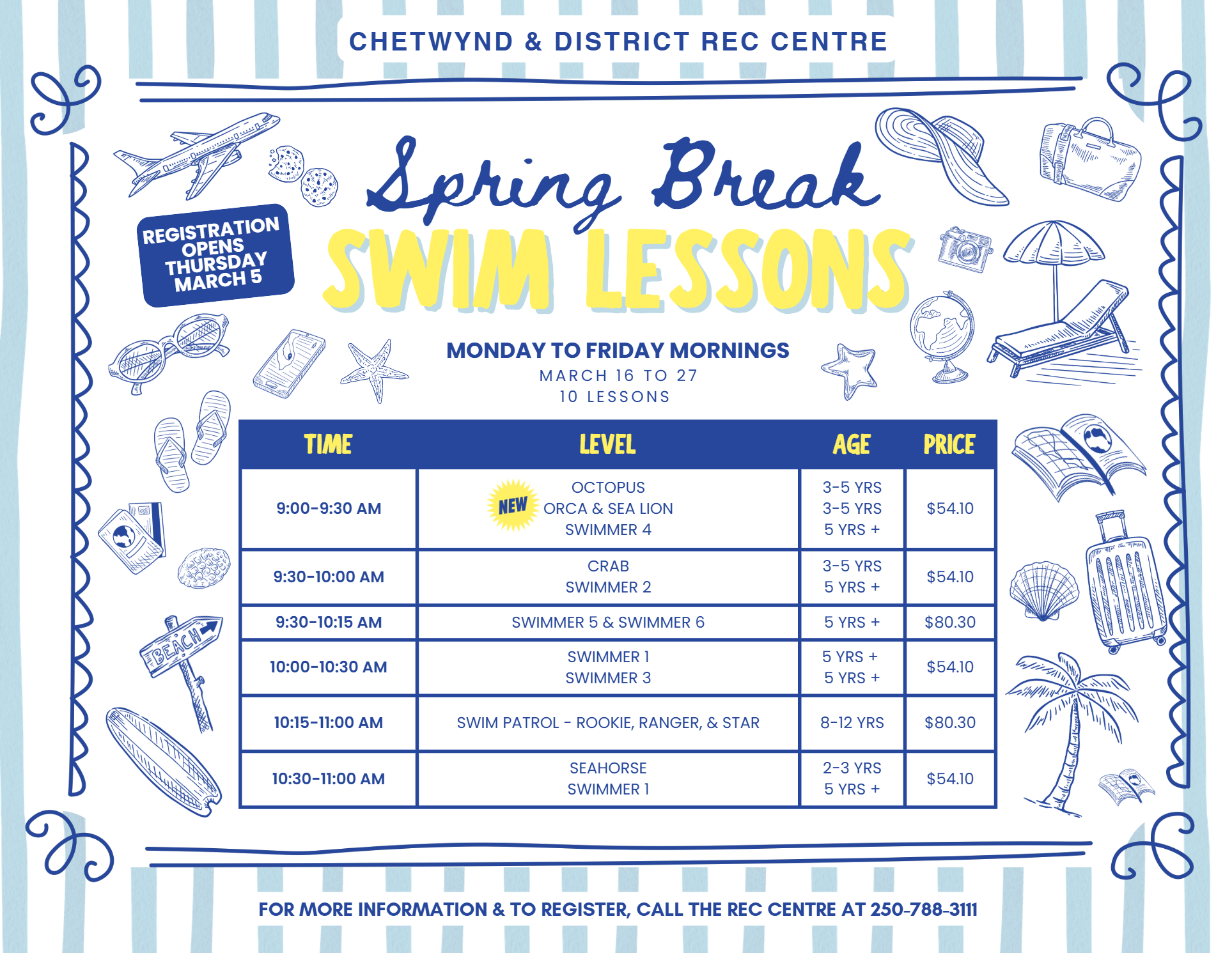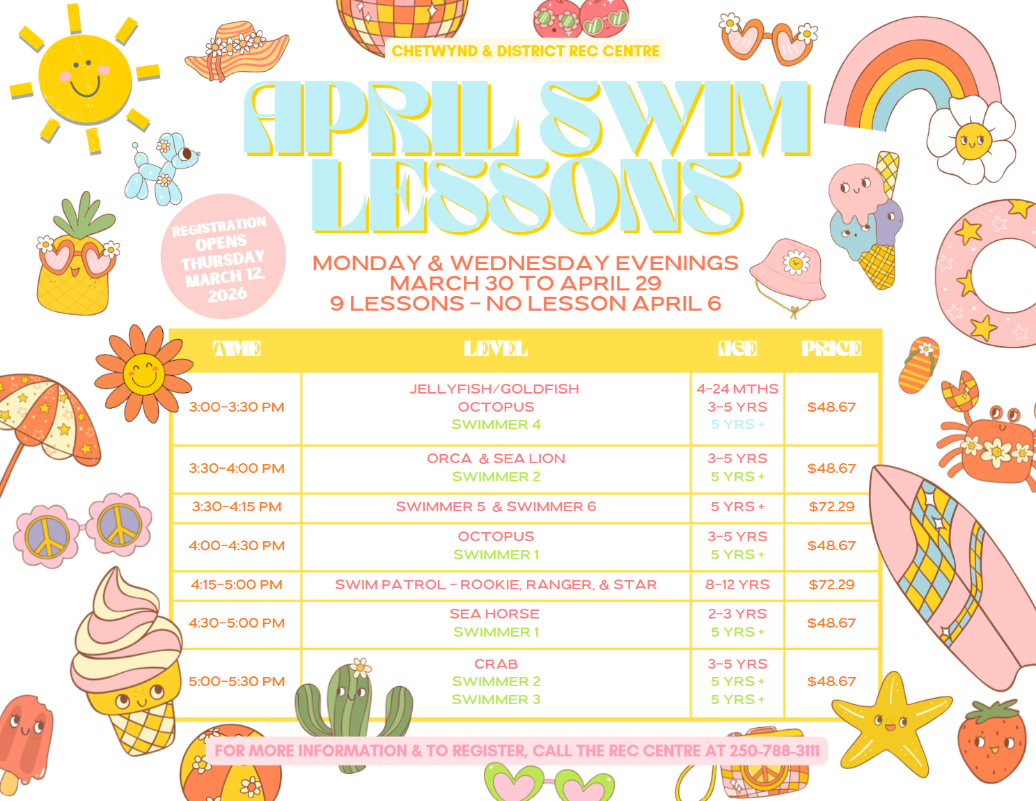 Registration is available IN PERSON and OVER THE PHONE for all public sessions. If you are interested in Private Lessons, please contact the Aquatic Supervisor or Manager of Leisure Services at 250-788-2214 or come in during front desk hours to enroll.