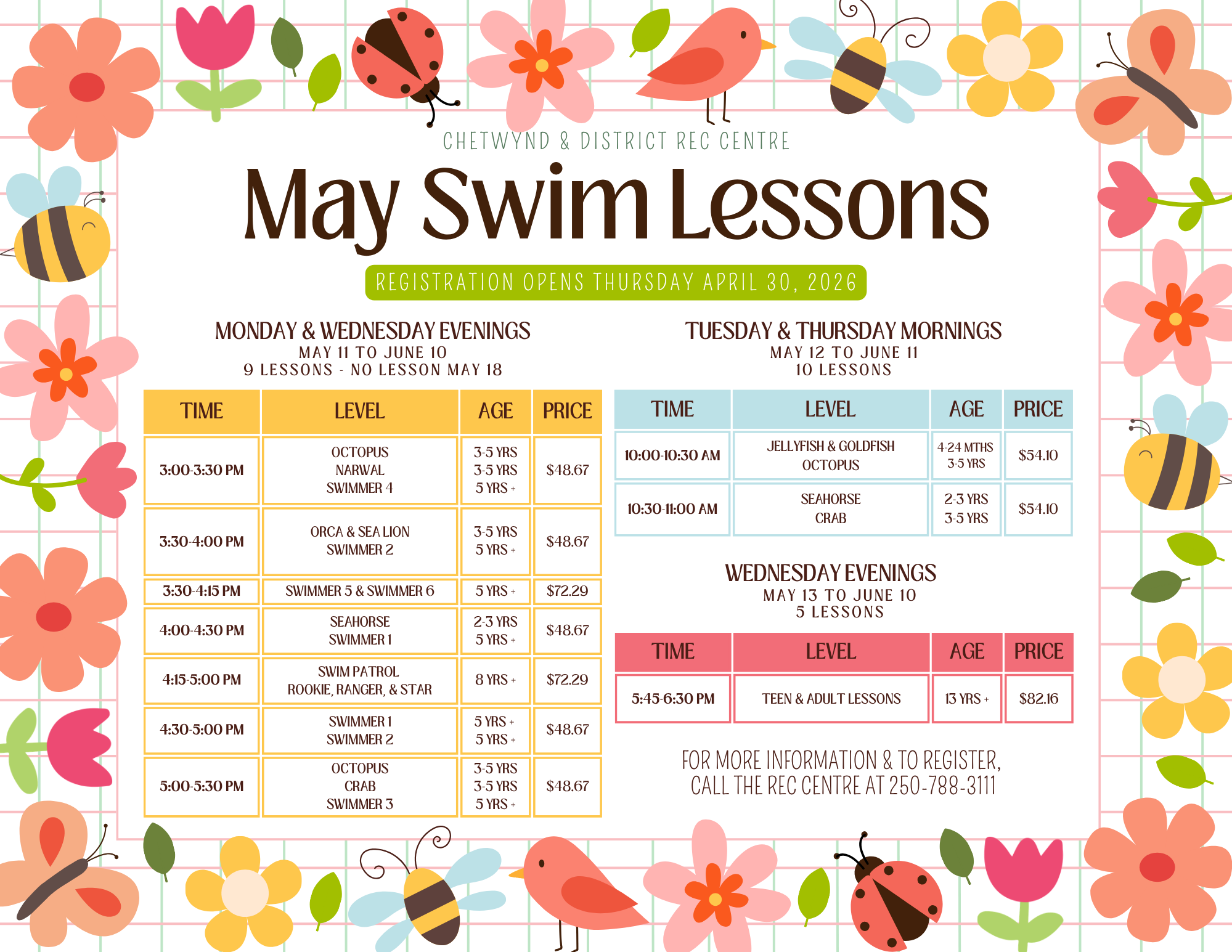 Registration is available IN PERSON and OVER THE PHONE for all public sessions. If you are interested in Private Lessons, please contact the Aquatic Supervisor or Manager of Leisure Services at 250-788-2214 or come in during front desk hours to enroll.
